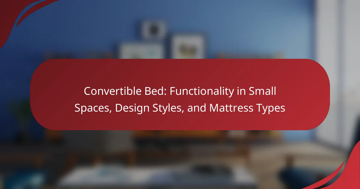 Convertible beds are multifunctional furniture pieces that can transform from a sofa or chair into a bed, making them ideal for small living spaces. This article explores the various types of convertible beds, including sofa beds, futons, and Murphy beds, highlighting their key features, design styles, and the benefits of different mattress types. It also discusses how these beds maximize space efficiency, enhance room versatility, and provide cost benefits, while offering practical tips for selecting and maintaining a convertible bed. Additionally, the impact of design styles on aesthetic choices and functionality is examined, ensuring readers understand the comprehensive aspects of convertible beds.