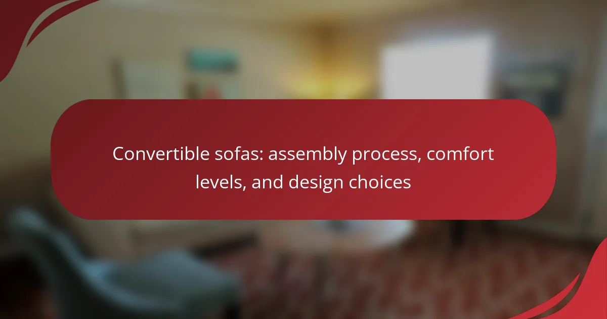 Convertible sofas are multifunctional furniture pieces that can transition from a sofa to a bed, making them ideal for small spaces. This article provides an overview of the assembly process for convertible sofas, highlighting key steps such as attaching legs and connecting frame sections. It also examines comfort levels, noting the impact of materials and design on user experience. Additionally, various design choices, including sectional, futon, and sleeper styles, are discussed, along with customization options that cater to different aesthetic preferences and practical needs.