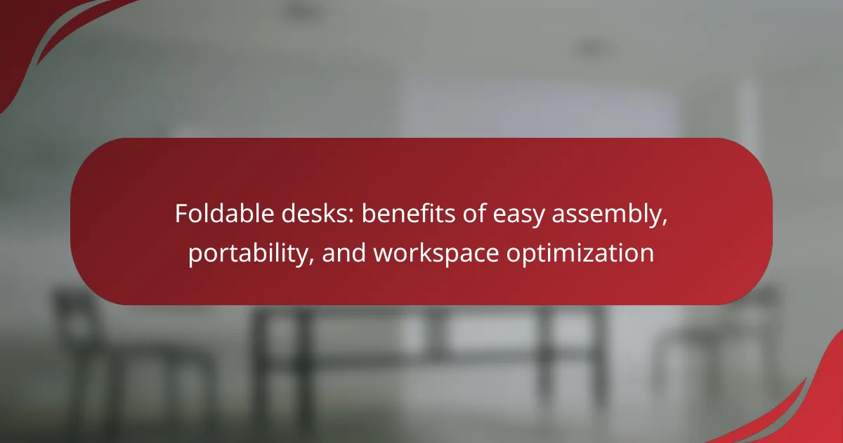 Foldable desks are versatile furniture designed for easy collapse and storage, increasingly popular due to their space-saving capabilities, lightweight nature, and convenience. Their easy assembly allows users to set up and dismantle quickly, making them ideal for dynamic work environments. The rise of remote work has heightened the demand for adaptable furniture solutions, with many users preferring flexible workspaces. Effective utilization of foldable desks can enhance workspace optimization through strategic placement, multi-functional use, and organized layouts, ultimately improving focus and productivity.