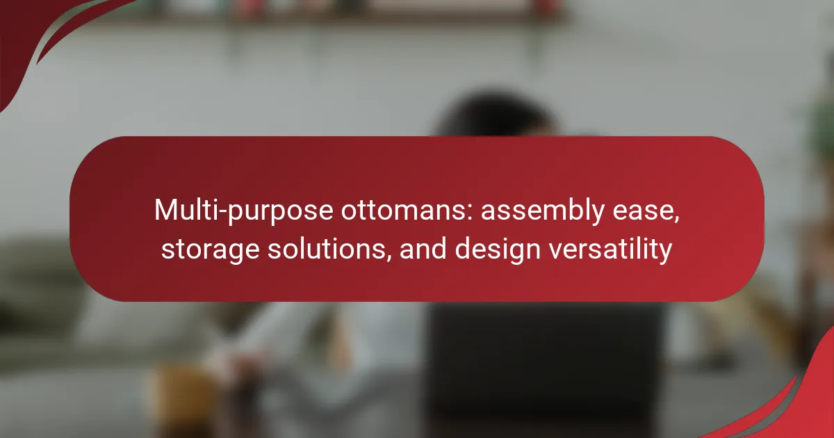Multi-purpose ottomans are versatile furniture pieces that serve multiple functions, including seating, footrests, and storage solutions. This article examines their design versatility, highlighting various styles, materials, and features such as hidden compartments that enhance functionality and organization in living spaces. Additionally, it addresses the ease of assembly, emphasizing user-friendly designs and tools required for setup. Readers will learn how to effectively incorporate multi-purpose ottomans into home decor while maximizing their utility and aesthetic appeal.