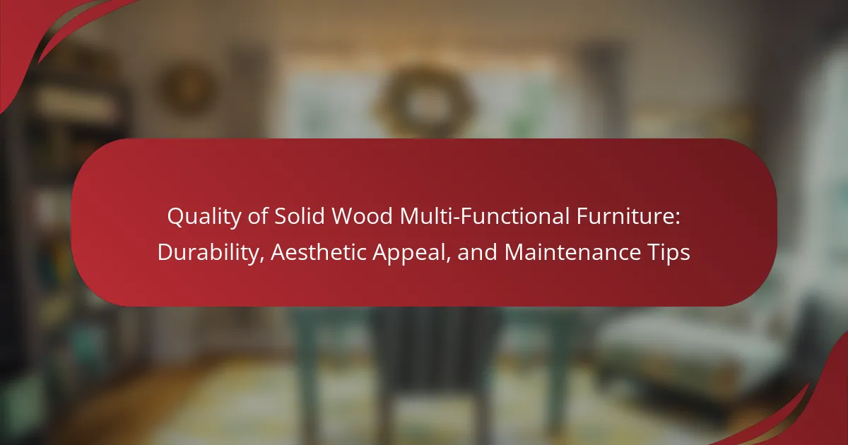 Solid wood multi-functional furniture is characterized by its durability, aesthetic appeal, and versatility in serving multiple functions. This article examines the defining qualities of solid wood furniture, including commonly used wood types, construction methods, and the importance of quality in enhancing both durability and visual appeal. It also explores key maintenance practices to extend the lifespan of such furniture, while highlighting the impact of environmental factors and design styles on its aesthetic qualities. Overall, the content provides a comprehensive understanding of solid wood multi-functional furniture, emphasizing its practicality and value in modern living spaces.