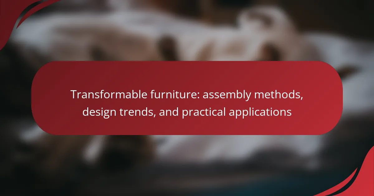 Transformable furniture refers to versatile pieces designed to change their form or function, catering to various needs and spaces. This article explores the assembly methods, design trends, and practical applications of transformable furniture, highlighting its importance in maximizing utility, especially in small apartments. Key trends include multifunctional designs, minimalist aesthetics, sustainable materials, and smart technology integration. The article also discusses how transformable furniture enhances space efficiency by providing multiple functions in a single piece, making it an ideal solution for modern living environments.